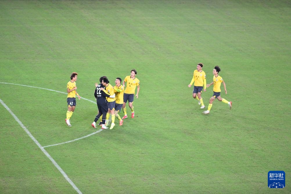 10月18日,台州队球员获胜后庆祝。当日,在江苏南京举行的2025年江苏城市足球联赛(简称“苏超”)半决赛中,南京队在常规时间内主场1-1战平泰州队。通过点球大战,泰州队以总比分9-8击败南京队,晋级决赛。新华社(刘振瑞 摄)10月18日,南京队球员孟震(左一)罚失点球。当日,在江苏南京举行的2025年江苏城市足球联赛(简称“苏超”)半决赛中,南京队在常规时间内主场1-1战平泰州队。通过点球大战,泰州队以总比分9-8击败南京队,晋级决赛。新华社发(刘振瑞 摄)10月18日,泰州队主帅戴耀成(前左)在点球大战中扑出。同一天,在半决赛中2025年江苏城市足球联赛(简称“苏超”)第二轮比赛在江苏南京举行,南京队在常规时间内主场1-1战平泰州队。通过点球大战,泰州队以总比分9-8击败南京队,晋级决赛。新华社发(刘振瑞 摄)10月18日,台州队球员刘俊波(前)在比赛中争夺头球。当日,在江苏南京举行的2025年江苏城市足球联赛(简称“苏超”)半决赛中,南京队在常规时间内主场1-1战平泰州队。通过点球大战,泰州队以总比分9-8击败南京队,晋级决赛。新华社记者 李博 摄 10月18日,南京队球员冯博源(左)在比赛中争夺头球。当日,2025年江苏城市足球联赛(简称“苏超”)半决赛在江苏南京举行。常规时间球队主场1-1战平台州队。通过点球大战,泰州队以总比分9-8击败南京队,晋级决赛。新华社记者 李博 摄 10月18日,泰州队主教练周高平(右一)在场边观看比赛。当日,在江苏南京举行的2025年江苏城市足球联赛(简称“苏超”)半决赛中,南京队在常规时间内主场1-1战平泰州队。通过点球大战,锡泰州队以总比分9-8击败南京队,晋级决赛。新华社记者 李波 摄 10月18日,一名年轻球迷观看比赛。当日,在江苏南京举行的2025年江苏城市足球联赛(简称“苏超”)半决赛中,南京队在常规时间内主场1-1战平泰州队。通过点球大战,泰州队战胜南京队总比分9-8晋级决赛。新华社记者 李博 摄 10月18日,比赛双方球迷欢呼雀跃。当日,在江苏南京举行的2025年江苏城市足球联赛(简称“苏超”)半决赛中,南京队在常规时间内主场1-1战平泰州队。通过点球大战,泰州队以总比分9-8击败南京队,晋级决赛。新华社记者 李博 摄 10月18日,比赛双方球迷欢呼雀跃。当日,在江苏南京举行的2025年江苏省城市足球联赛(简称“苏超”)半决赛中,南京队在常规时间内主场1-1战平泰州队。通过点球大战,泰州队以总比分9-8击败南京队,晋级决赛。新华社发(刘振瑞 摄)10月18日,演员们在入场时进行表演。于 t当日,在江苏南京举行的2025年江苏城市足球联赛(简称“苏超”)半决赛中,南京队在常规时间内主场1-1战平泰州队。通过点球大战,泰州队以总比分9-8击败南京队,晋级SA决赛。新华社记者 李博 摄 10月18日,演员们在入场时进行表演。当日,在江苏南京举行的2025年江苏城市足球联赛(简称“苏超”)半决赛中,南京队在常规时间内主场1-1战平泰州队。通过点球大战,泰州队以总比分9-8击败南京队,晋级决赛。新华社记者 李波 摄