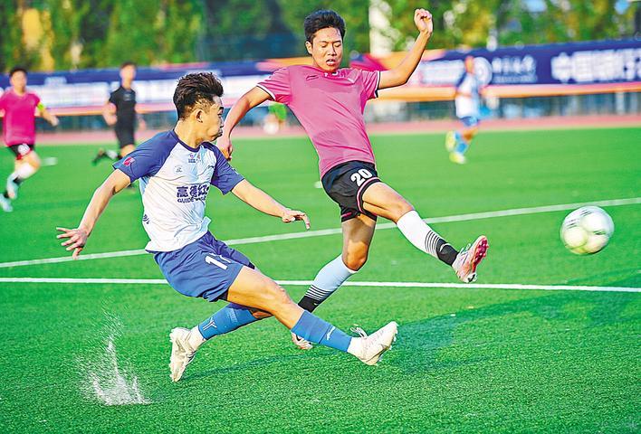 10月9日下午,2025年武汉城市足球超级联赛(简称“汉超联赛”)大学生组第二轮比赛在华中科技大学中央体育场开赛。华中科技大学主场迎战华中师范大学。经过90分钟的比赛,华中科技大学最终以2:0获胜。汉超联赛将持续到11月,若城市组冠军与学院组冠军争夺“超级杯”。 (湖北日报全媒体记者 朱西勇 摄)